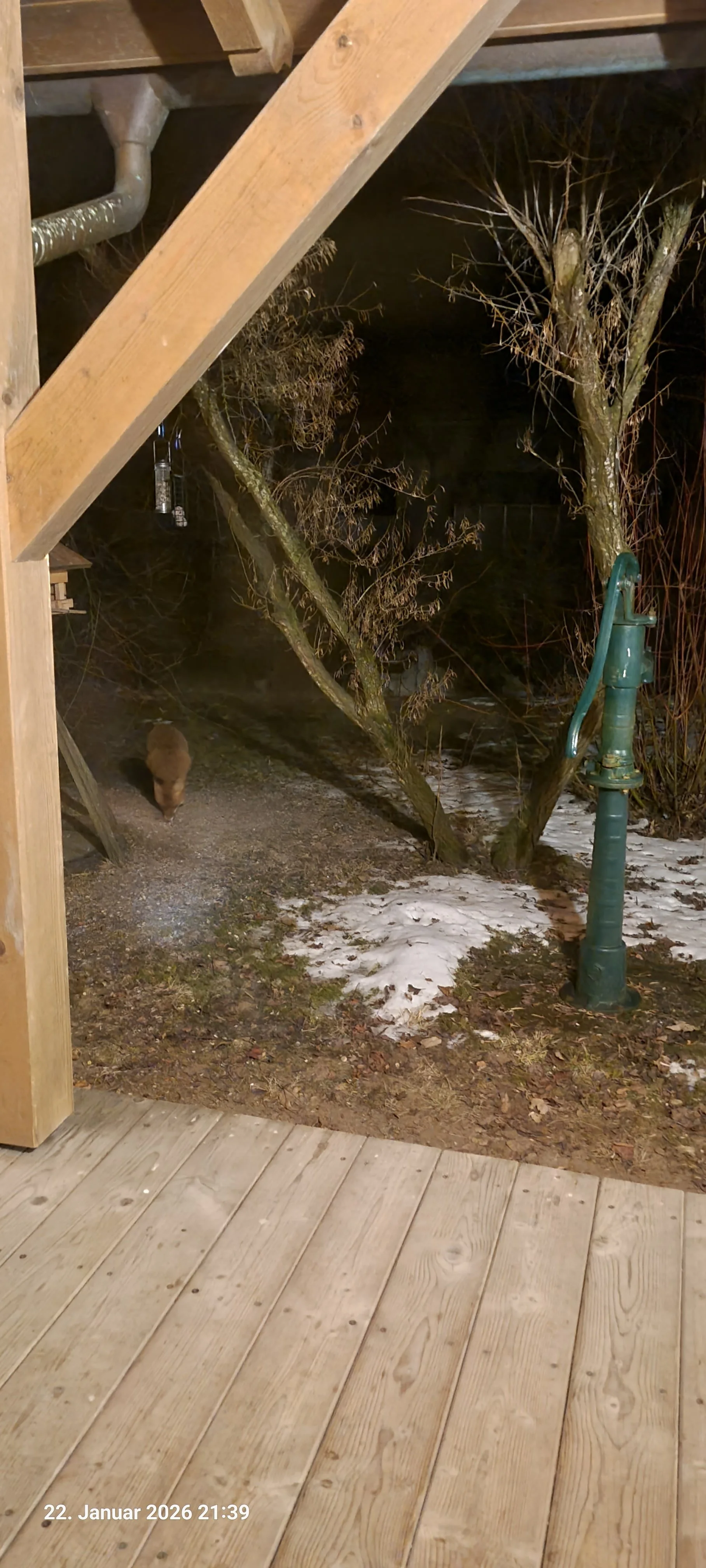 Elisabeth wundert sich schon seit langem warum sie so viel Vogelfutter braucht. Jetzt ist es klar. Es sind nicht die Spatzen, Rotkehlchen, Spechte, etc. Das eine Oachkatzl war es auch nicht obwohl wir gesehen haben das es die Sonnenblumenkerne öffnet und frisst. Wir haben einen jungen Fuchs der uns allabendlich besucht und die heruntergefallenen Reste aufnimmt.
