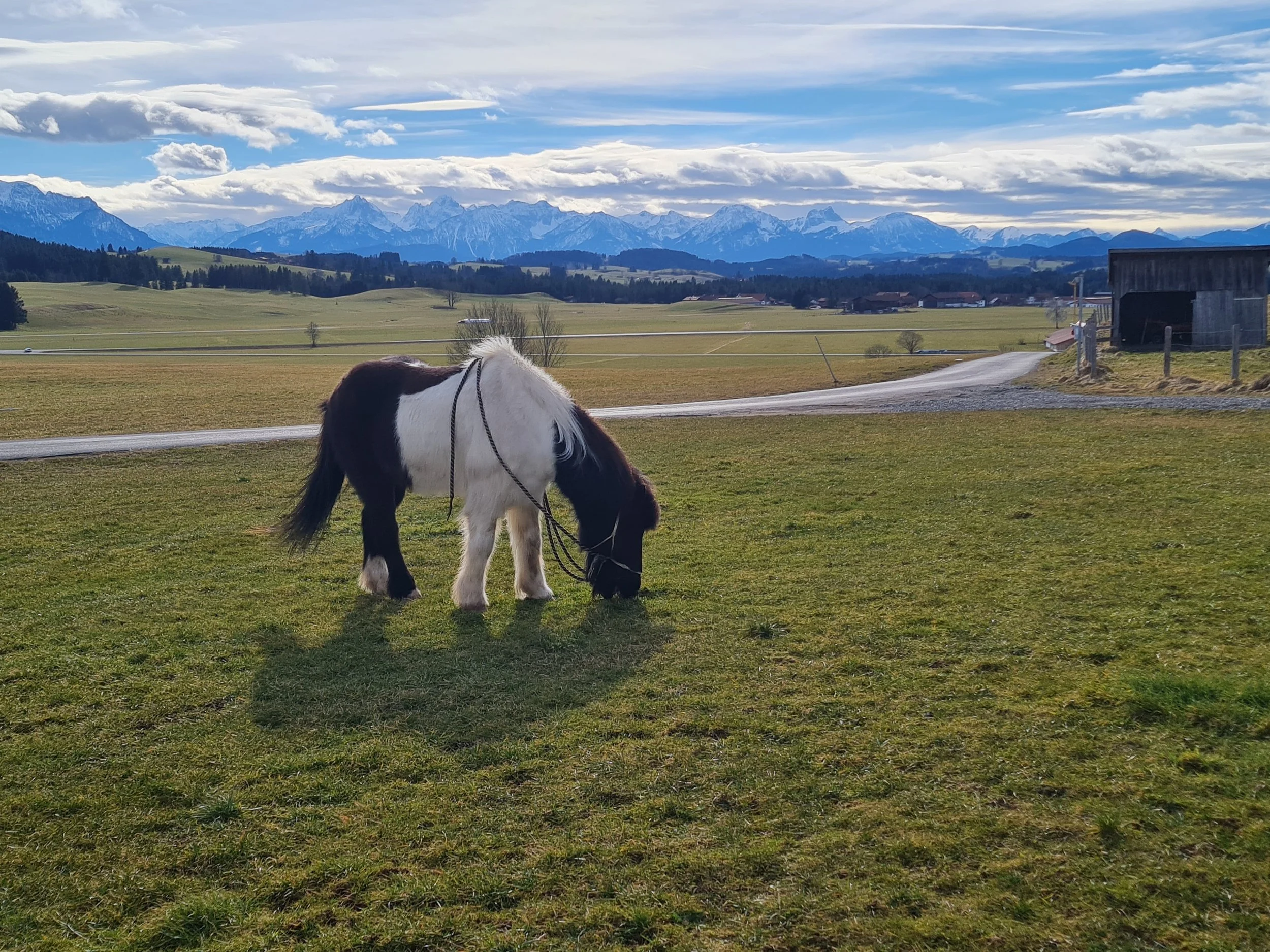 Eine so schöne Zeit in den Voralpen. Erste Spaziergänge sind wieder möglich, Elghur kann die Pausen wieder richtig nutzen - und er ist wieder gesund. Wer uns hier mal besucht, ich zeige gerne den Platz mit der tollen Aussicht. Die Alpenkette von den Tannheimer Bergen bis nach Murnau.