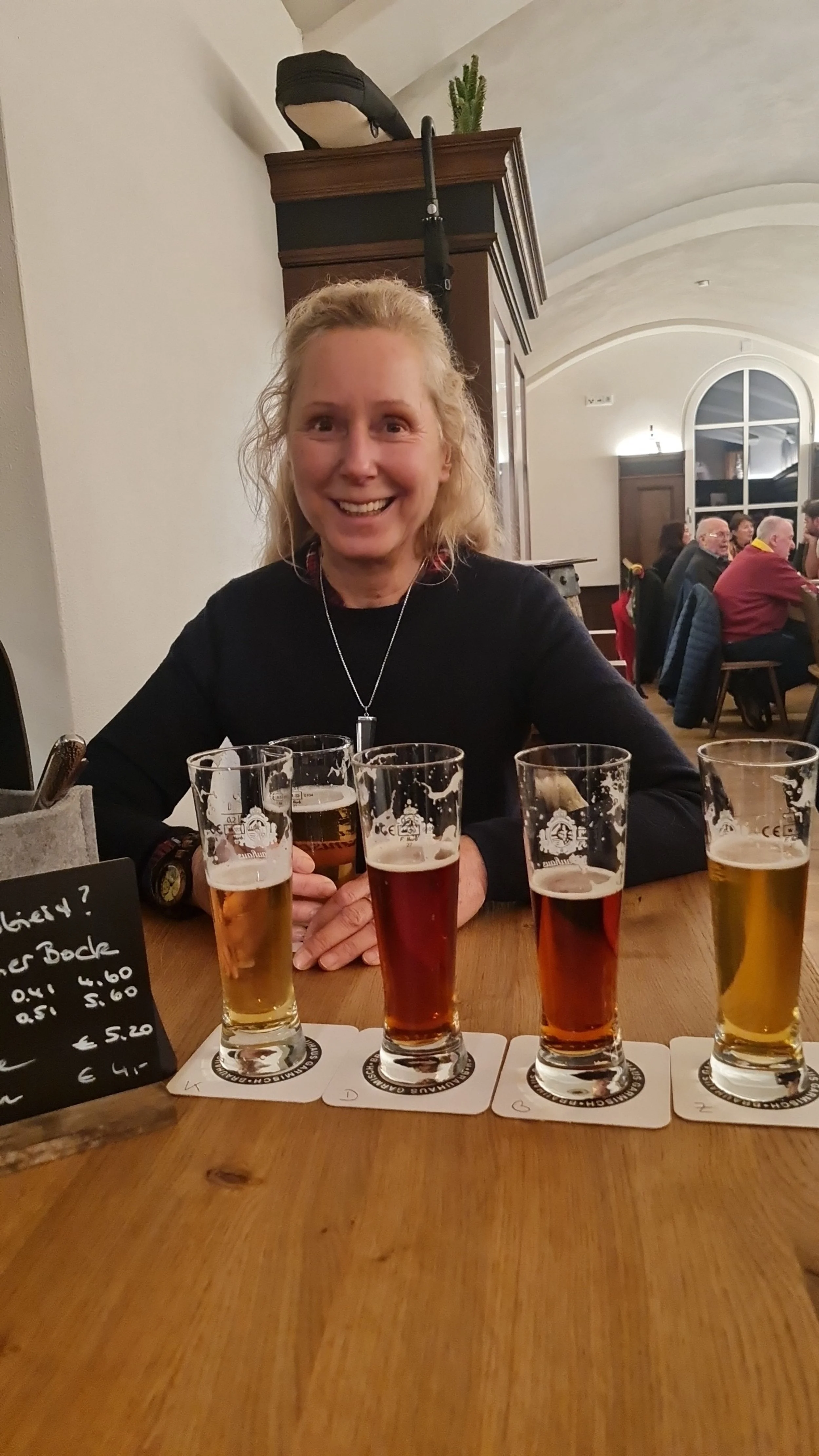 Elisabeth und ich testen das neue Brauhaus in Garmisch. Tolle Idee alle Biere als 0,2 Testglas anzubieten.